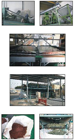 首先將面板及機殼分離,機殼部份依鐵、鋁及塑膠等不同物料分別分類貯存,面板則進入後段處理流程。